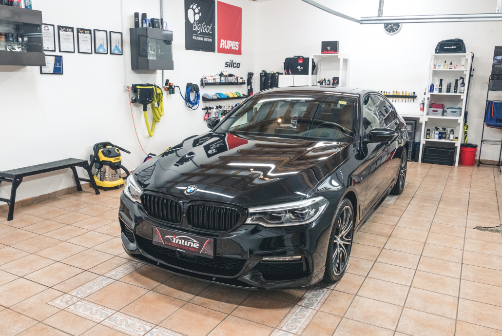 BMW G30 je že po tako temeljitem pranju izgledal fantastično, a to je bil šele začetek. Delikatno delo se je za športnega poslovneža šele dobro začelo.