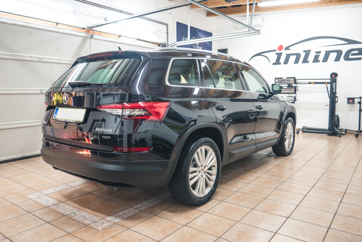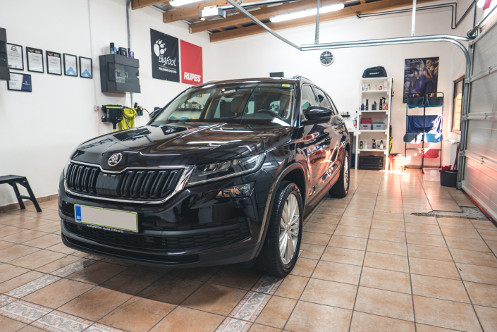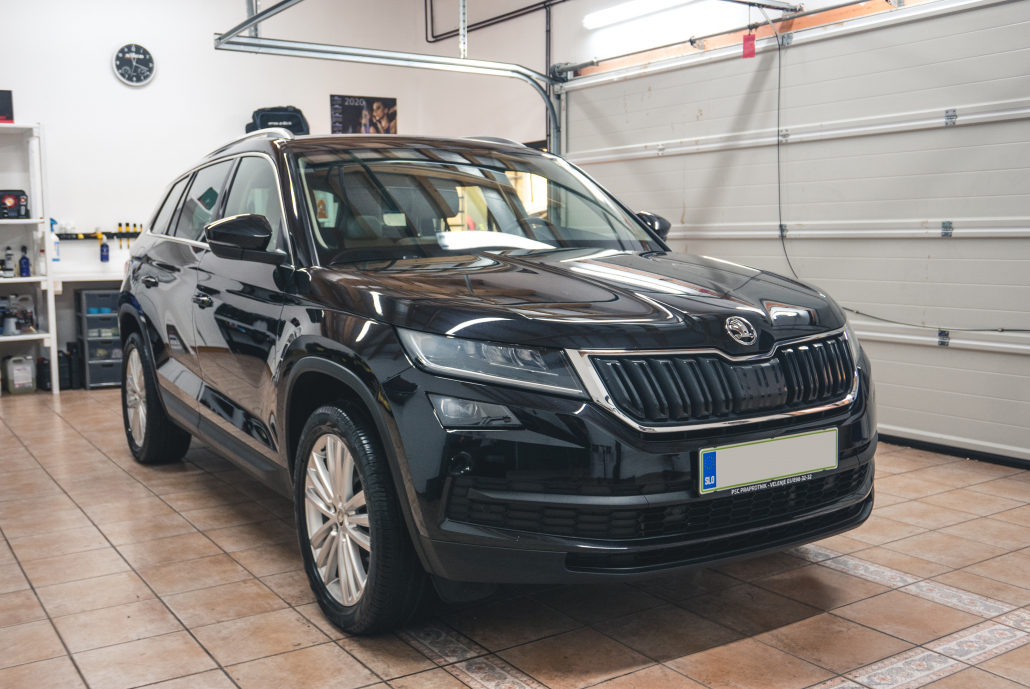 Tokrat vam bomo predstavili osvežitev rabljenega vozila z predhodno nanešeno keramično zaščito. Govorili bomo o dekontaminaciji laka, osnovnemu poliranju in keramični zaščiti. V roke smo dobili vozilo Škoda Kodiaq črne barve. Stranka je pred tremi leti peljala vozilo na tretma keramične zaščite znamke Gtechniq. Ker je zaščita začela popuščati, se je stranka odločila za nov nanos keramične zaščite. Pričeli smo s samim pranjem in z odstranjevanjem zračne rje ter katrana in nadaljevali v studiu na toplem z merjenjem laka na vozilu in samim pregledom. Ugotovili smo, da je keramika zelo dobro služila čez vsa ta leta in da ne bomo imeli dosti dela z korekcijo. Našli smo nekaj večjih prask in mikroprask, ki so nastale ob nepravilnem pranju vozila ter še par malenkosti. Vozilo smo primerno maskirali za lažje manevriranje pri poliranju. Po končanem poliranju in razmaščevanju smo dobili gladko in sijočo podlago za nanos keramične zaščite. Tokrat smo se odločili za keramiko znamke CarPro, ki sodi v sam vrh glede zaščit in je zelo dobro poznana tako med entuzijasti kot med profesionalci. Vozilo je zaščiteno in pripravljeno na prevzem.
